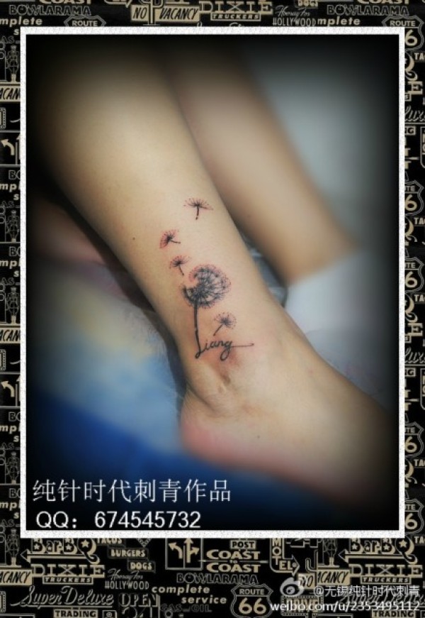 女生小腿潮流时尚的蒲公英纹身图案_女生纹身图案大全_纹身图吧