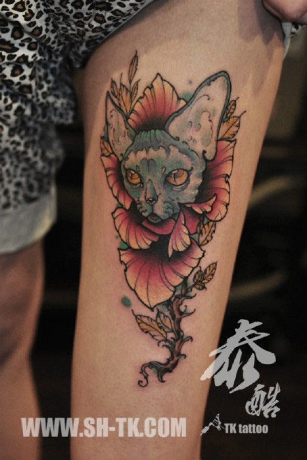 女生腿部潮流经典的猫咪纹身图案_女生纹身图案大全_纹身图吧