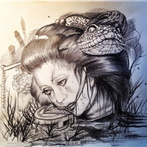 古典美女蛇纹身图案纹身图片_女生纹身图案大全_纹身图吧