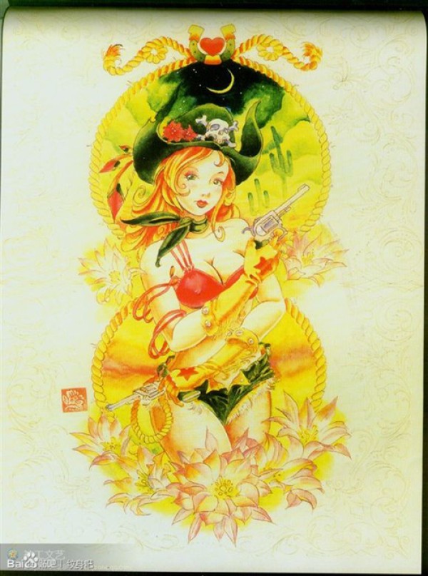 彩色半胛美女纹身_女生纹身图案大全_纹身图吧