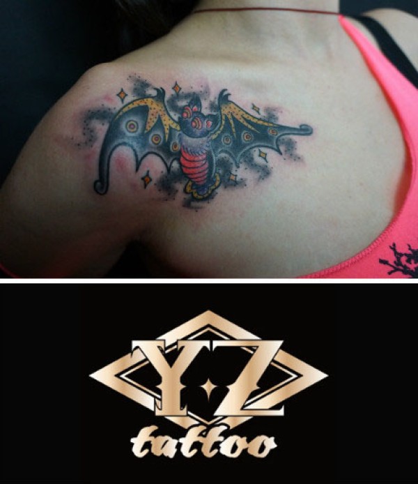 女生肩膀处时尚潮流的蝙蝠纹身图案_女生纹身图案大全_纹身图吧