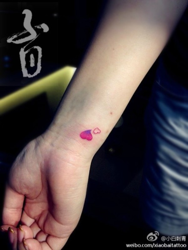 女生手腕小巧时尚的爱心纹身图案_女生纹身图案大全_纹身图吧