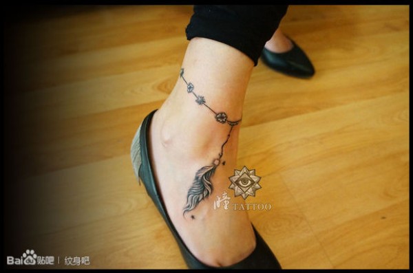 女生脚腕潮流的羽毛脚链纹身图案_女生纹身图案大全_纹身图吧