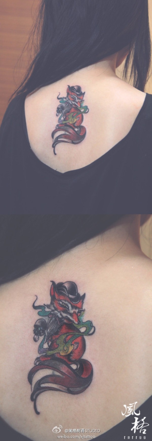 女生后背潮流经典的小狐狸纹身图案_女生纹身图案大全_纹身图吧