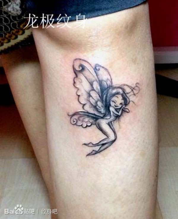 女生腿部可爱的小精灵纹身图案_女生纹身图案大全_纹身图吧