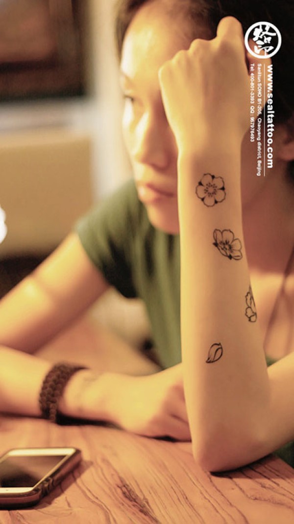 女生手臂小巧时尚的花卉纹身图案_女生纹身图案大全_纹身图吧