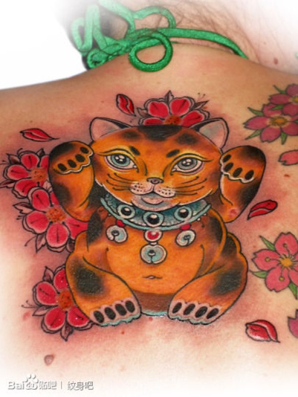 女生后背经典时尚的招财猫纹身图案_女生纹身图案大全_纹身图吧