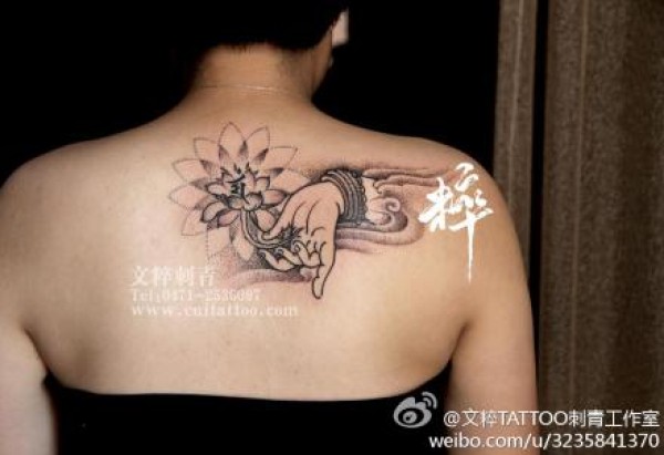 女生后背潮流精美的佛手莲花纹身图案_女生纹身图案大全_纹身图吧