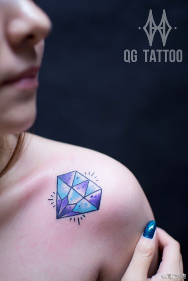 女生肩膀处小巧时尚的钻石纹身图案_女生纹身图案大全_纹身图吧