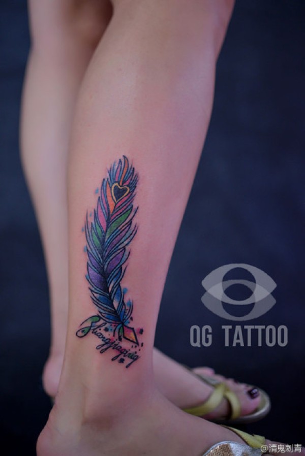 女生腿部好看唯美的羽毛纹身图案_女生纹身图案大全_纹身图吧