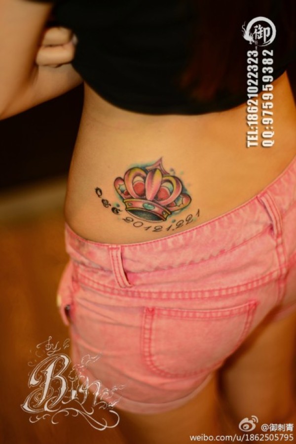 女生腰部精美好看的彩色皇冠纹身图案_女生纹身图案大全_纹身图吧