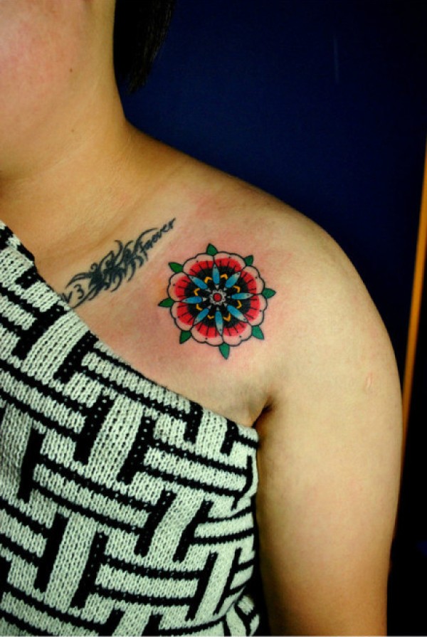 女生肩膀处小花卉纹身图案_女生纹身图案大全_纹身图吧