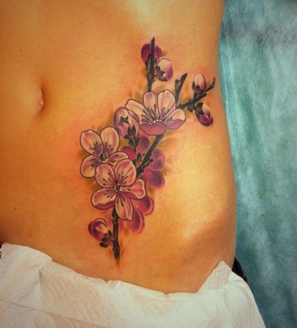 女生腹部漂亮潮流的花卉纹身图案_女生纹身图案大全_纹身图吧