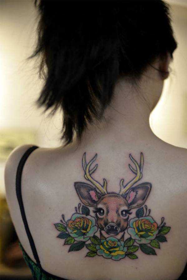 女生后背潮流可爱的小鹿纹身图案_女生纹身图案大全_纹身图吧