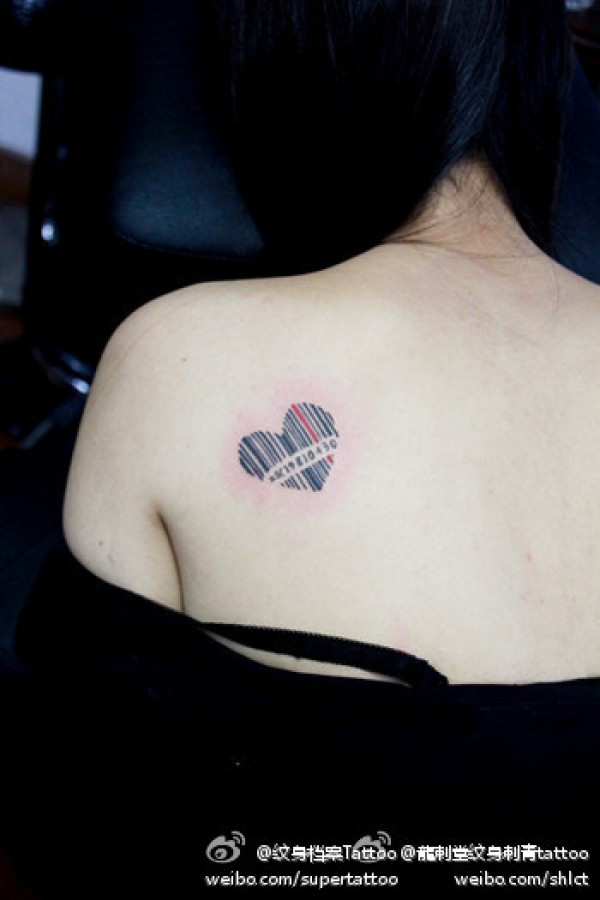 女生肩背小巧潮流的条形码纹身图案_女生纹身图案大全_纹身图吧