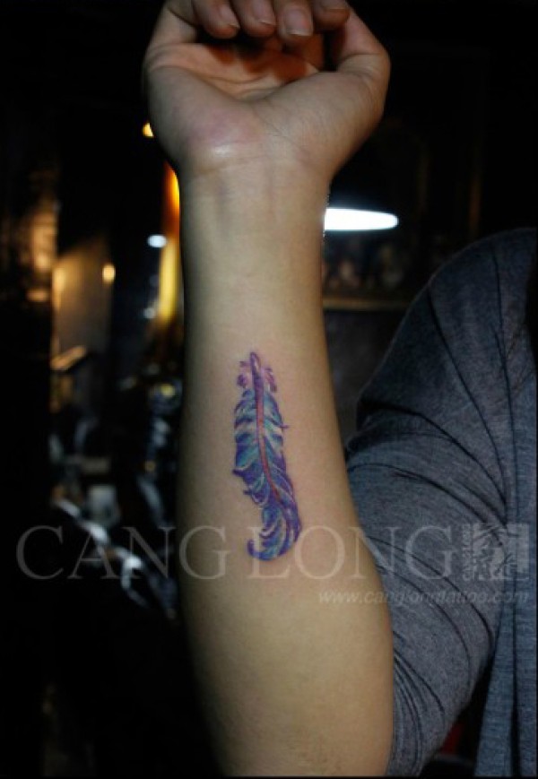 女生手臂好看潮流的彩色羽毛纹身图案_女生纹身图案大全_纹身图吧