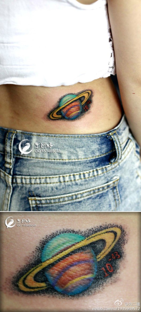 女生腰部一款彩色小星球纹身图案_女生纹身图案大全_纹身图吧