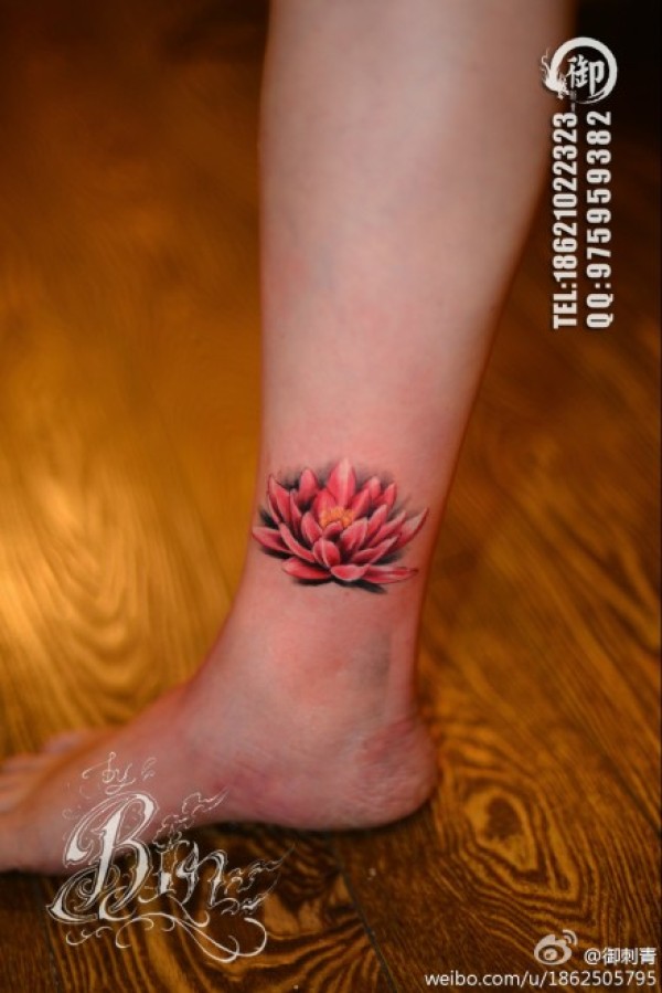 女生腿腕好看精美的彩色莲花纹身图案_女生纹身图案大全_纹身图吧