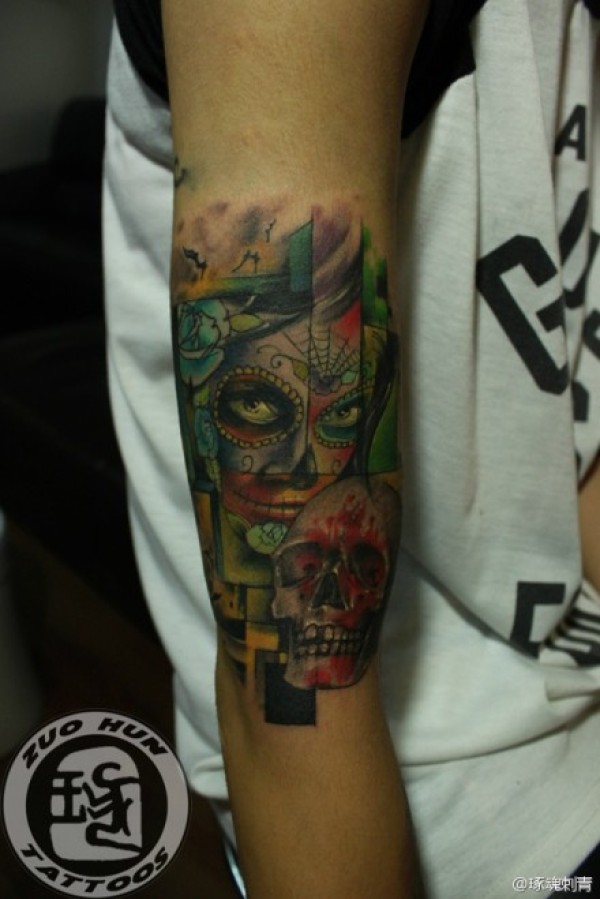 时尚很帅的一款亡灵装美女纹身图案_女生纹身图案大全_纹身图吧