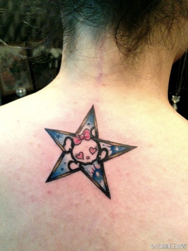 女生后背潮流时尚的五角星纹身图案_女生纹身图案大全_纹身图吧