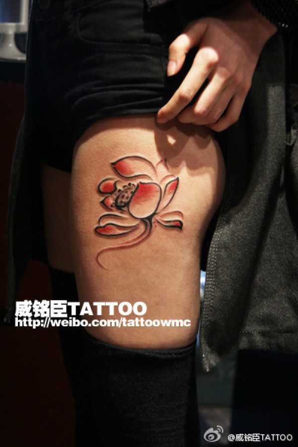 女生腿部唯美潮流的莲花纹身图案_女生纹身图案大全_纹身图吧