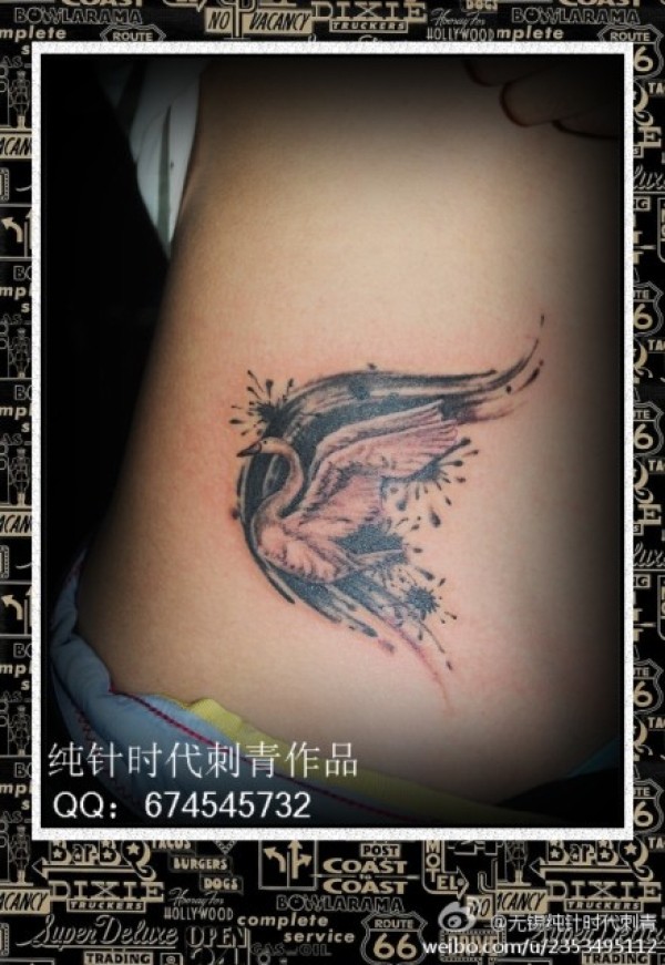女生腹部黑灰小天鹅纹身图案_女生纹身图案大全_纹身图吧