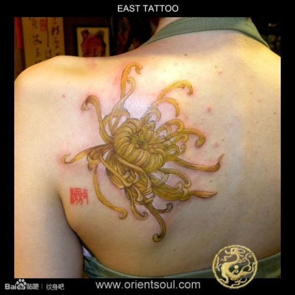 女生肩背时尚好看的菊花纹身图案_女生纹身图案大全_纹身图吧