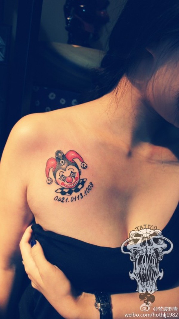 女生胸前一款可爱的小丑纹身图案_女生纹身图案大全_纹身图吧