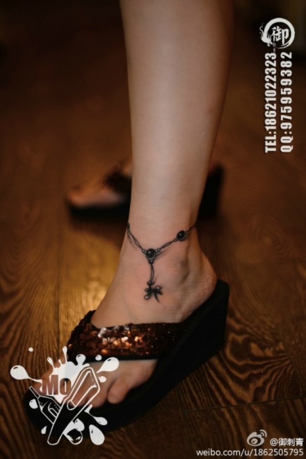 女生脚腕潮流小巧的一款脚链纹身图案_女生纹身图案大全_纹身图吧