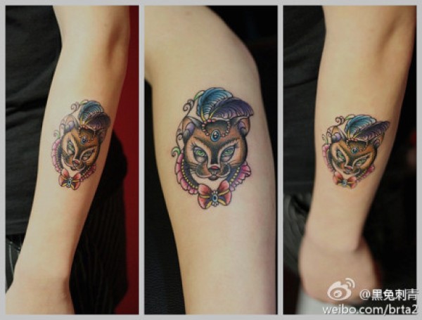 一款女生手臂潮流时尚的猫咪纹身图案_女生纹身图案大全_纹身图吧