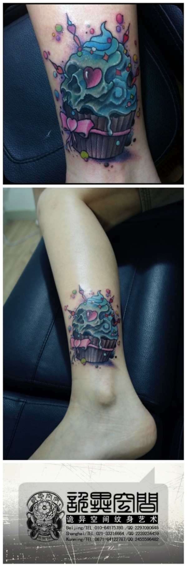 女生腿部潮流时尚的冰激凌纹身图案_女生纹身图案大全_纹身图吧