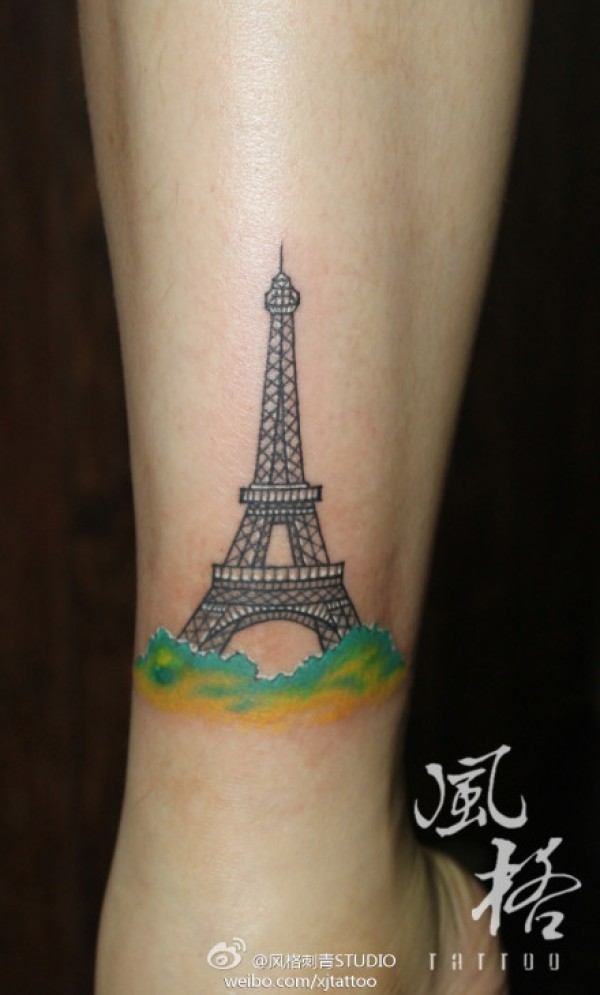 女生腿部潮流时尚的巴黎铁塔纹身图案_女生纹身图案大全_纹身图吧