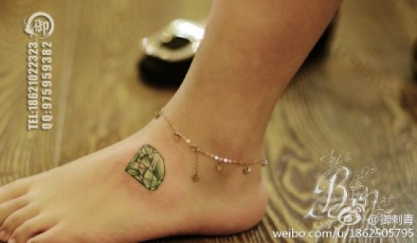 女生脚背小巧时尚的彩色钻石纹身图案_女生纹身图案大全_纹身图吧