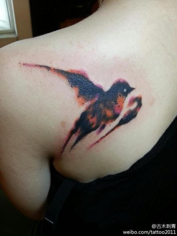 女生肩背潮流唯美的小燕子纹身图案_女生纹身图案大全_纹身图吧