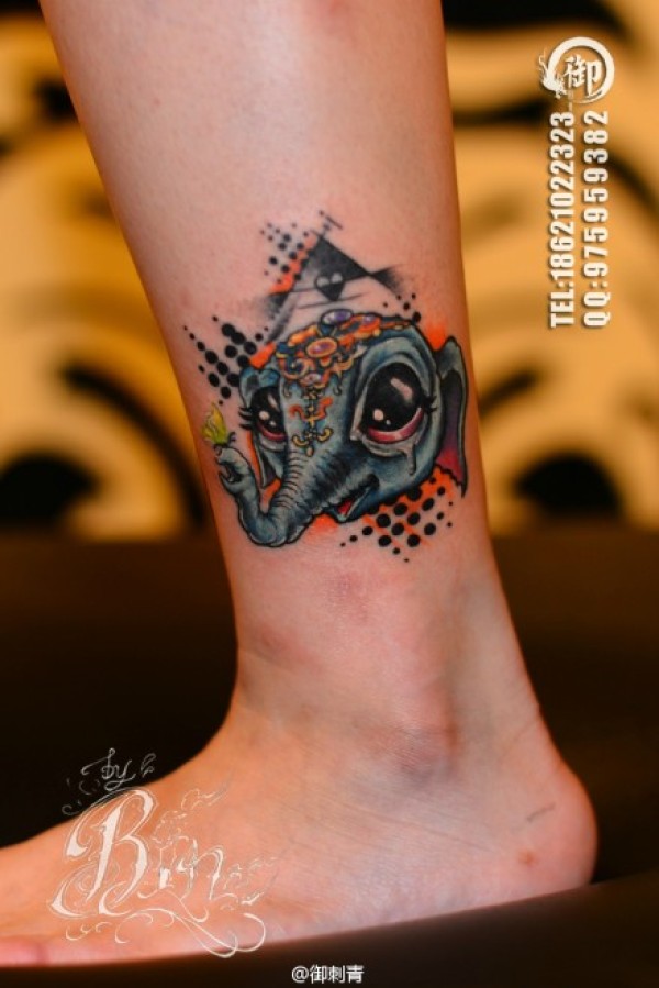 女生腿部潮流可爱的小象纹身图案_女生纹身图案大全_纹身图吧