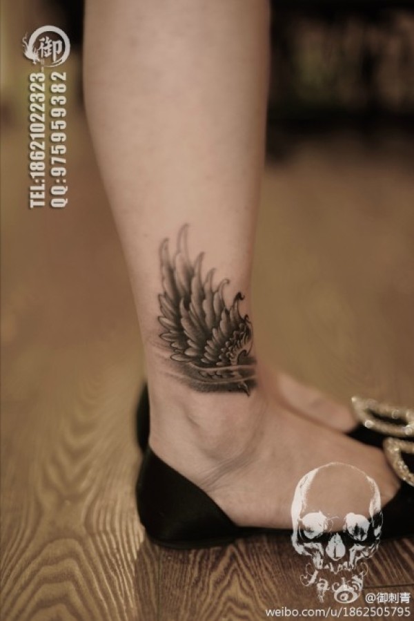 女生腿部潮流时尚的黑灰翅膀纹身图案_女生纹身图案大全_纹身图吧