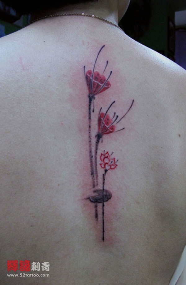 女生后背精美的莲蓬纹身图案_女生纹身图案大全_纹身图吧