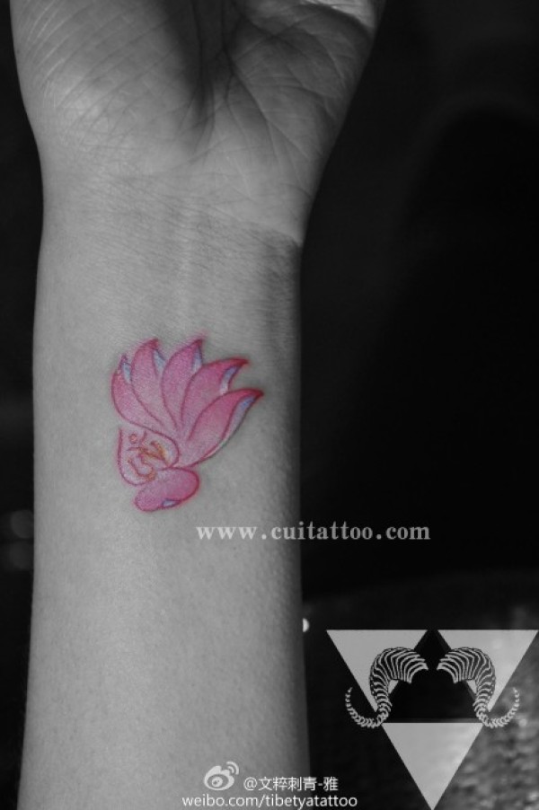女生手腕小巧精美的彩色莲花纹身图案_女生纹身图案大全_纹身图吧