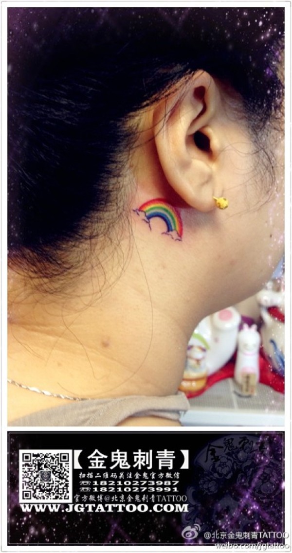 女生耳部潮流时尚的小彩虹纹身图案_女生纹身图案大全_纹身图吧