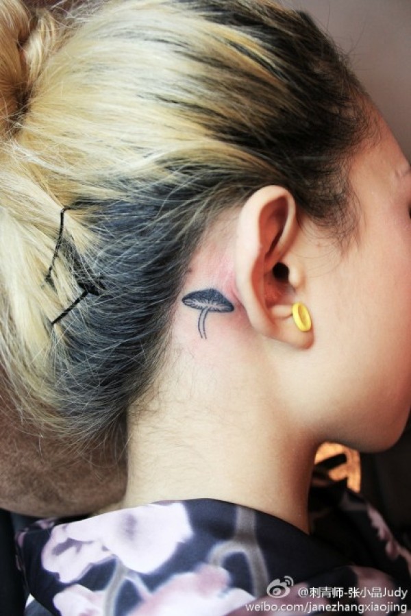 女生耳部潮流经典的小蘑菇纹身图案_女生纹身图案大全_纹身图吧