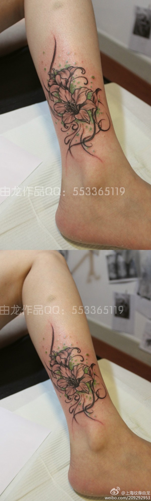 女生腿部漂亮的百合花纹身图案_女生纹身图案大全_纹身图吧