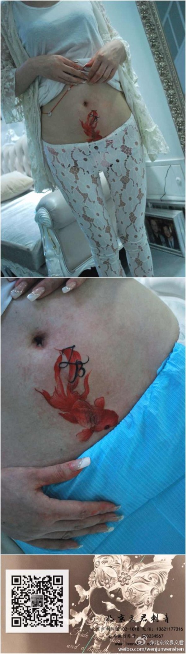 美女腹部彩色小金鱼纹身图案_女生纹身图案大全_纹身图吧