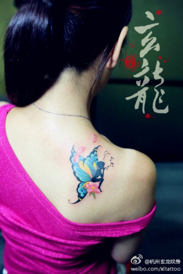 女生肩背潮流好看的小精灵纹身图案_女生纹身图案大全_纹身图吧