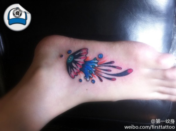 女生脚背时尚潮流的水母纹身图案_女生纹身图案大全_纹身图吧