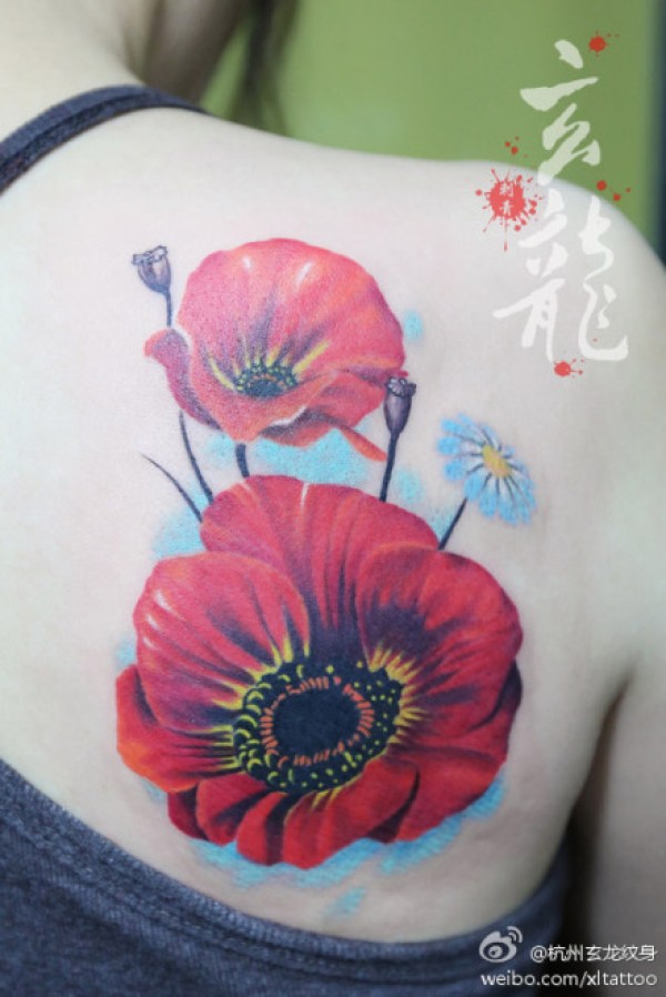女生肩背唯美漂亮的花卉纹身图案_女生纹身图案大全_纹身图吧