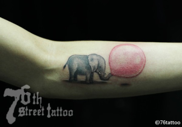 女生手臂可爱的处气球小象纹身图案_女生纹身图案大全_纹身图吧