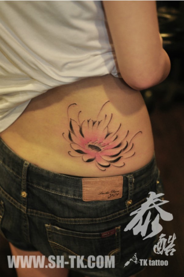 女生后腰潮流唯美的粉色莲花纹身图案_女生纹身图案大全_纹身图吧