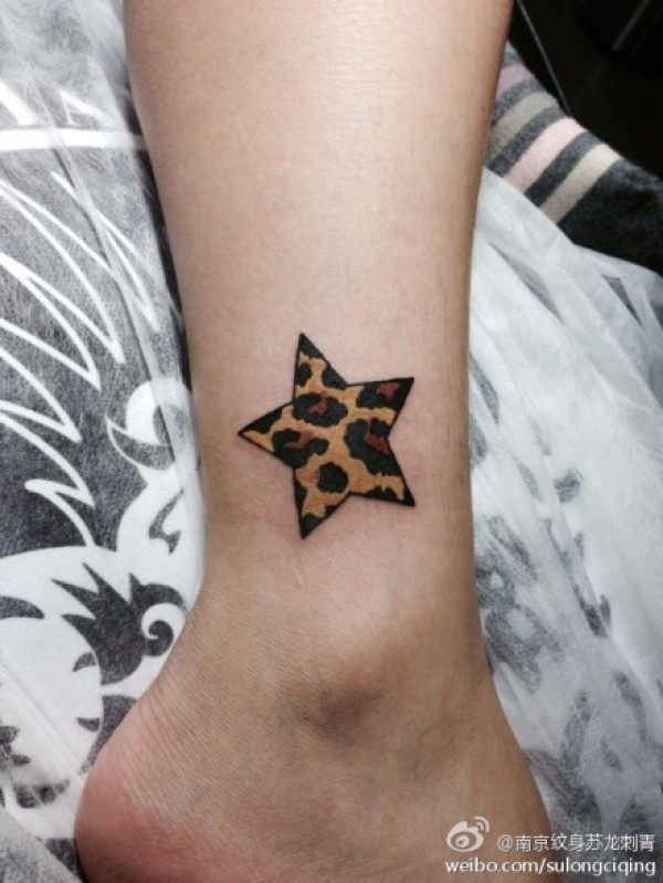 女生腿部潮流时尚的豹纹五角星纹身图案_女生纹身图案大全_纹身图吧