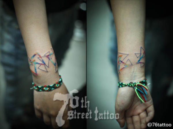 女生手腕潮流经典的彩色三角纹身图案_女生纹身图案大全_纹身图吧