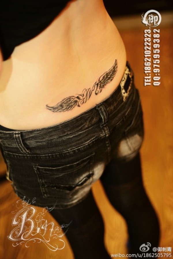女生后腰潮流小巧的翅膀纹身图案_女生纹身图案大全_纹身图吧